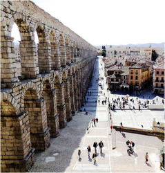 The evidence of this cultural process can be seen in the large number of outstanding monuments in the city, among which the Roman aqueduct stands out, probably built around 50 AD and remarkably well preserved. 813 metres in length, it is borne by 128 pillars. At the lowest point of the valley, it stands at a height of 28.5 metres above the ground.
