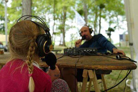 Antenne ouverte au peuple de Loire pour une émission radio en direct animée par la réalisatrice Laure Bourru et le journaliste Sébastien Rochard, tous deux résidents embarqués à bord de l'expédition Loire sentinelle.